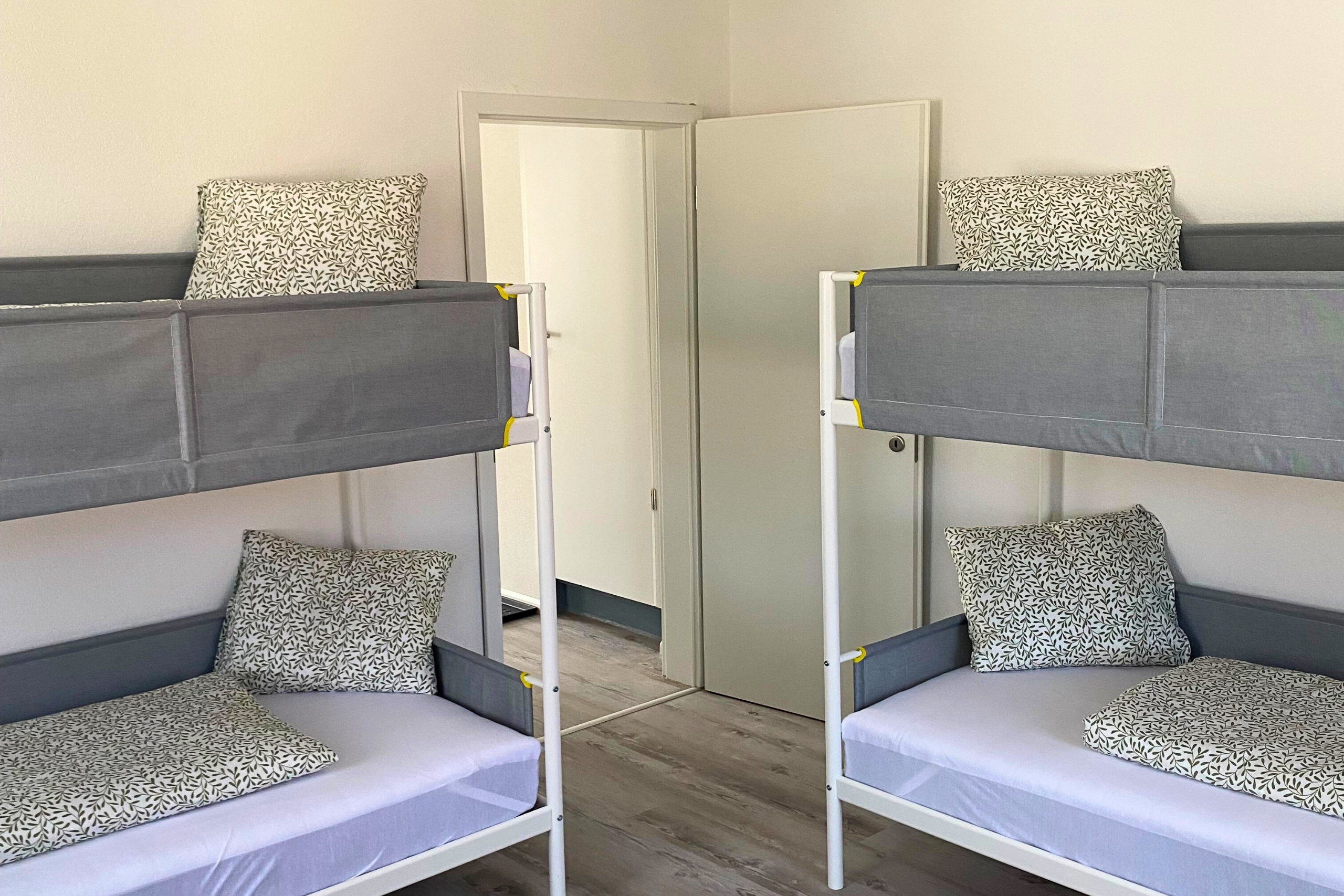 Großzügiges Komfortzimmer mit eigenem Bad, ideal für bis zu sechs Personen. Perfekt für Gruppen oder Familien, die viel Platz und eine entspannte Atmosphäre schätzen.
